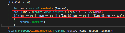 After the screen is locked with the note, the ransomware captures the keystrokes and blocks Alt key along with F4, Left windows key, Right windows key and Tab key. This combination of keys restricts the user from opening task manager or attempting to exit the lock screen. Capturing keystrokes is a feature we see in keyloggers. This ransomware is suspected to be a part of Snake Keylogger’s campaign which will be discussed later in the blog.