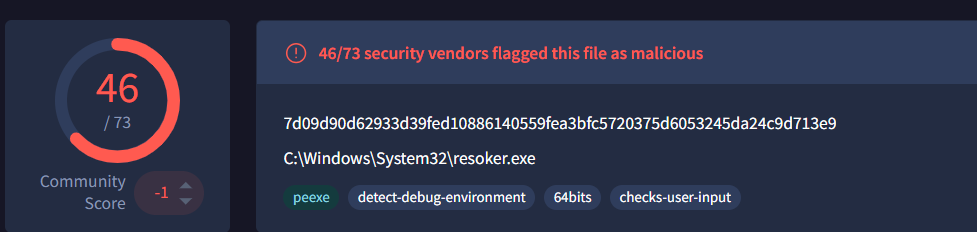 | 7a1d6c969e34ea61b2ea7a714a56d143 | Resoker.exe | Trojan ( 0001140e1 ) |