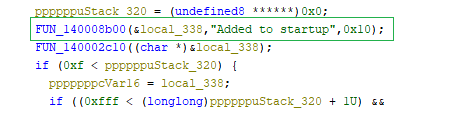 After creating this registry entry, the malware sends a confirmation message “Added to startup”.