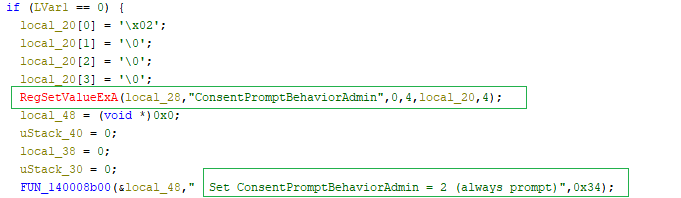 Then again it checks the ConsentPromptBehaviourAdmin setting ,and if its value is 0,it changes it to 2 (prompt on).