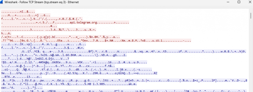 | Command & Control | T1573 | Encrypted channel | Establishes an encrypted HTTPS connection to Telegram Bot |