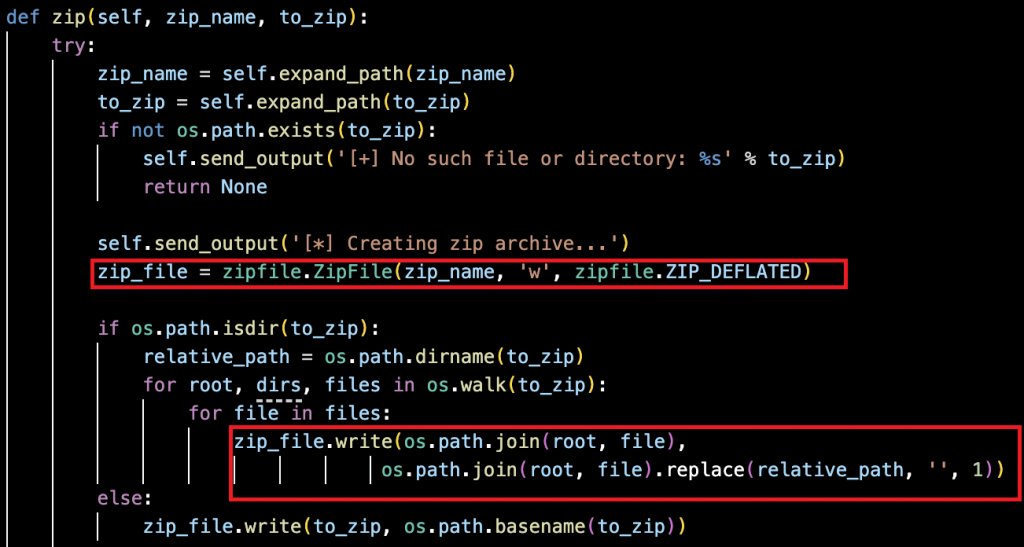 To make handling files and directories easier, the code creates ZIP archives that bundle multiple items into a single compressed file using the DEFLATE algorithm. When compressing a folder, it goes through all subfolders and files which are outlined in Figure 17, keeping the original structure intact. It also handles user and environment paths automatically, checks that the target exists, and runs in the background so that other tasks aren’t impacted.