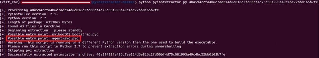 Basically it’s an ELF binary and we used pyinstxtractor to extract the Python files.